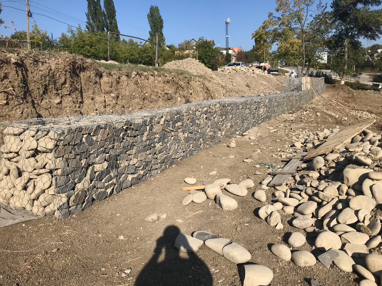 С начала работ произведены вырубка деревьев, выкорчевка и перевозка пней, завершены земляные работы и вывоз чернозема. Произведена планировка территории. Демонтировано ограждение. Завершена стенка из габионов, установка бордюр, дренажных лотков. Также завершен подвод электропроводки под фонари и установка фонарных столбов. На стадии завершения укладка асфальта. Идет установка скамеек.
