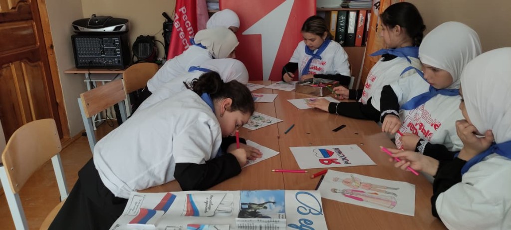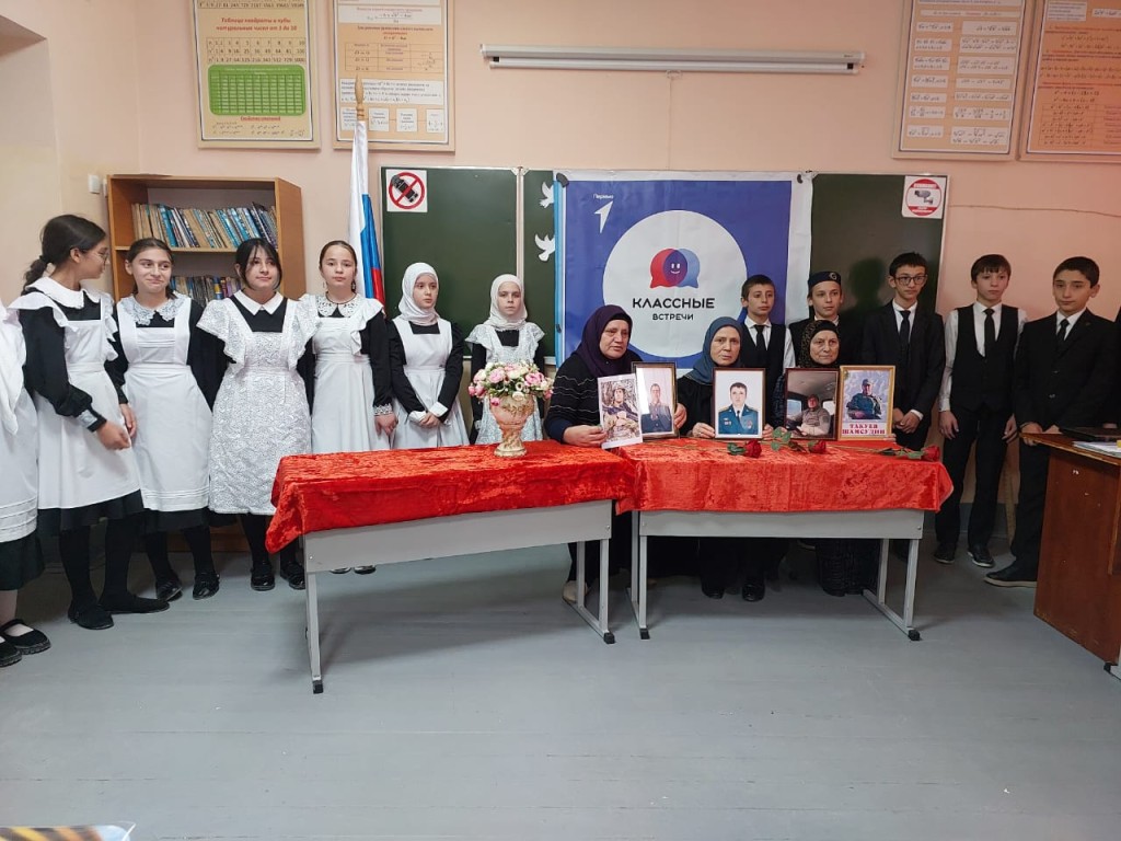 В Гертминской школе участники движения развернули масштабный флаг России и организовали тематическую выставку, а в Хубарской школе провели мастер-класс по традиционному ковроткачеству и встречу с матерями участников СВО.