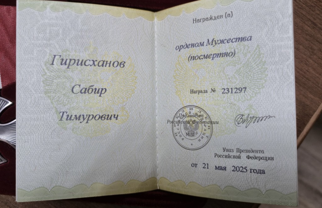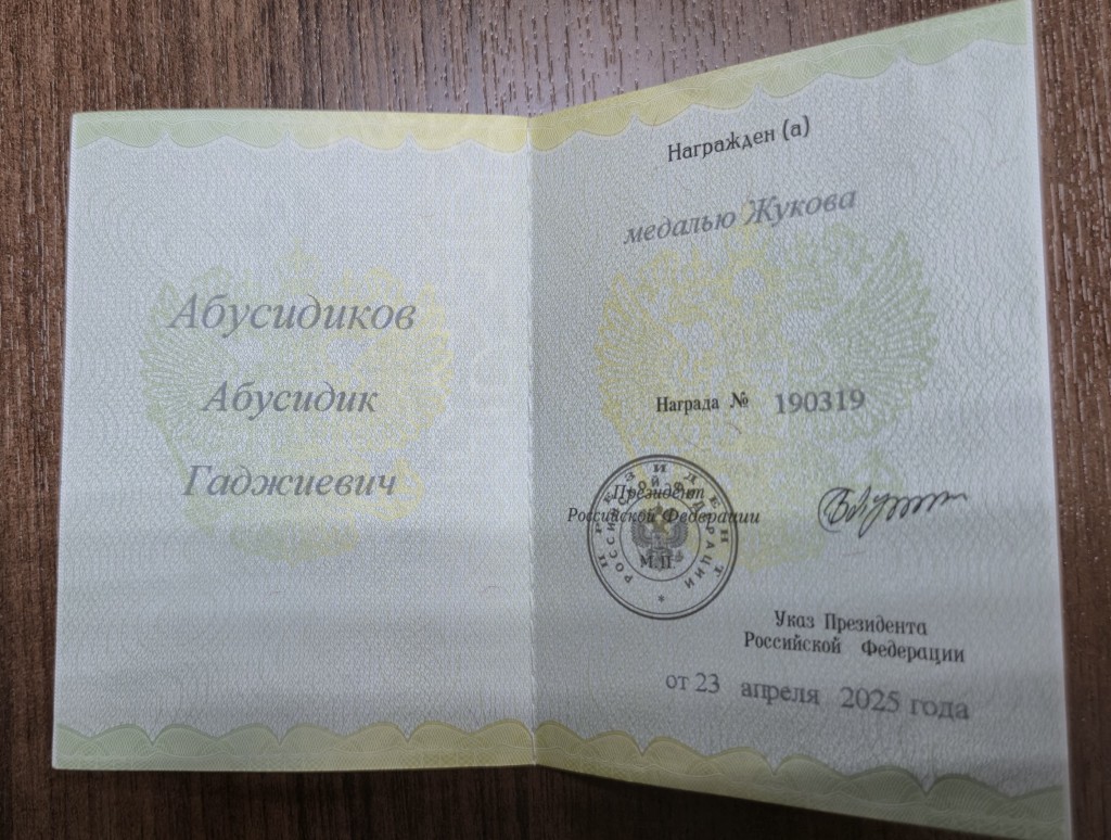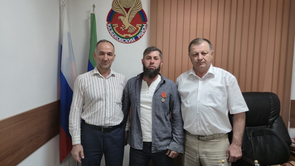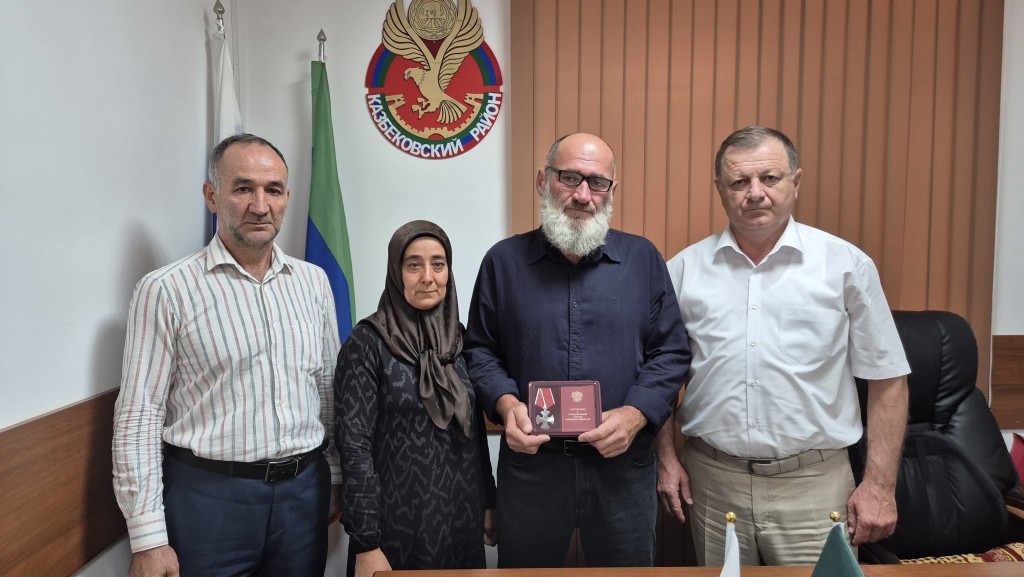 Заместитель главы МР «Казбековский район» по общественной безопасности Басир Нуцалов, председатель районного Собрания депутатов Казбековского района Гирисхан Гирисханов, военный комиссар Казбековского и Гумбетовского районов Арсен Магомедов, председатель Совета ветеранов Казбековского района Хункарби Магомедхабибов присутствовали при вручении награды Ордена Мужества родителям погибшего смертью храбрых при исполнении воинского долга Сабира Гирисханова из селения Ленинаул, также ветерану- участнику СВО Абусидику Абусидикову из селения Гостала ордена Жукова за проявленные мужество и героизм.