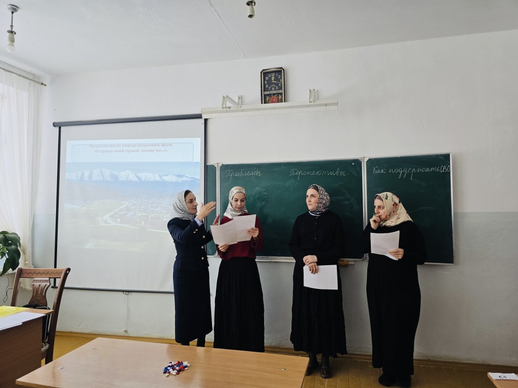 С целью привлечения внимания и повышения компетентности педагогов по вопросу нравственно-патриотического воспитания, по плану МКУ «Управление образования» МР «Казбековский район» в Калининаульской СОШ прошёл мастер-класс для педагогов на тему: «Патриотическое воспитание».