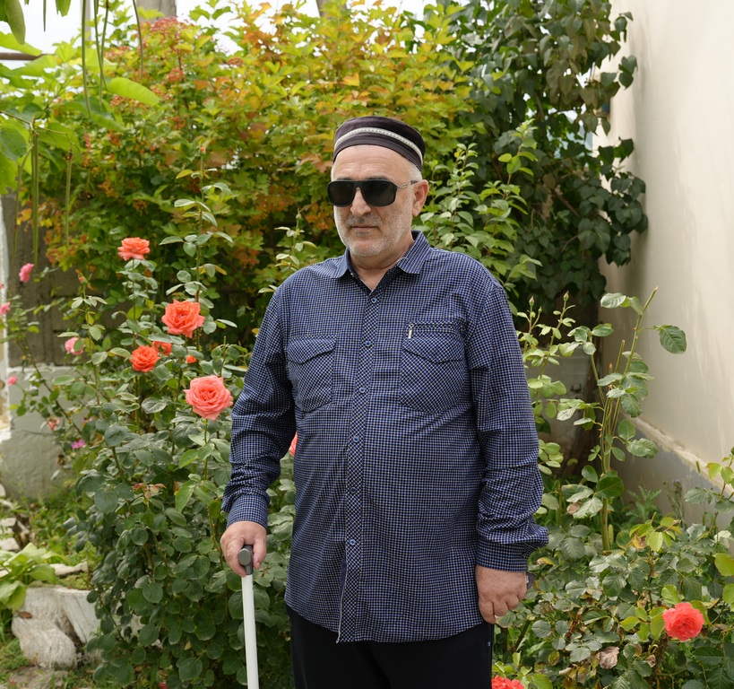 На ощупь он знает, какое фруктовое дерево, в ФАПе во дворе помогает ухаживать за цветами, к приходу пациентов во дворе утром поливает скамеечку, и все делается с улыбкой.