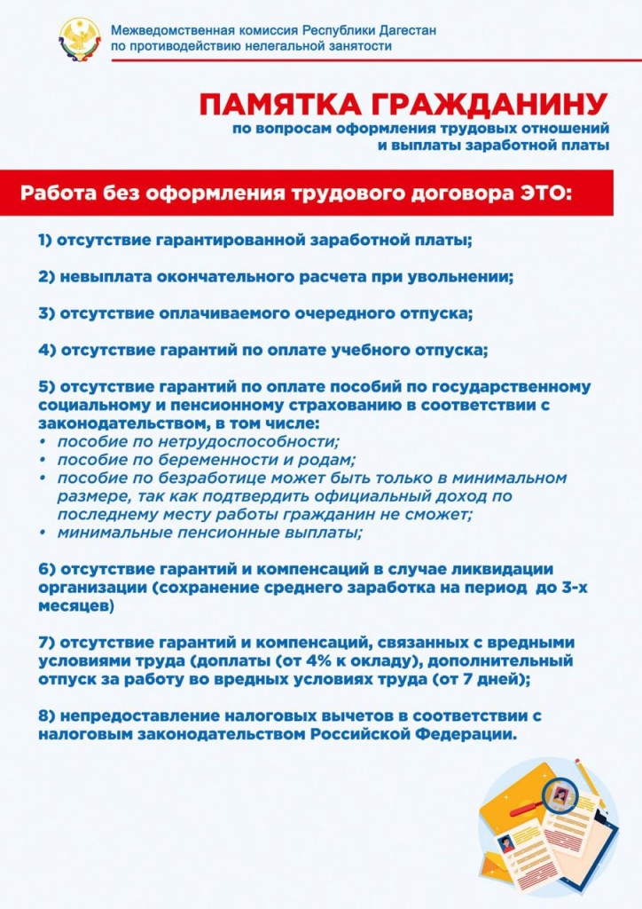 Неформальная занятость — вид трудовых отношений, основанных на устной договоренности, без заключения трудового договора. Законные трудовые отношения возникают между работником и работодателем только на основании трудового договора, заключаемого в соответствии с Трудовым Кодексом Российской Федерации. Неоформленные официально трудовые отношения влекут за собой серьезные последствия, как для работника, так и для работодателя.