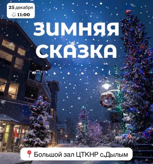 Приглашаем всех на незабываемое новогоднее представление «Зимняя сказка», которое состоится 25 декабря в 11:00 в Большом зале Центра культуры с.Дылым . Это волшебное событие предназначено для детей участников СВО, малообеспеченных детей, сирот и инвалидов — тех, чьи сердца ждут тепла, радости и чудес.