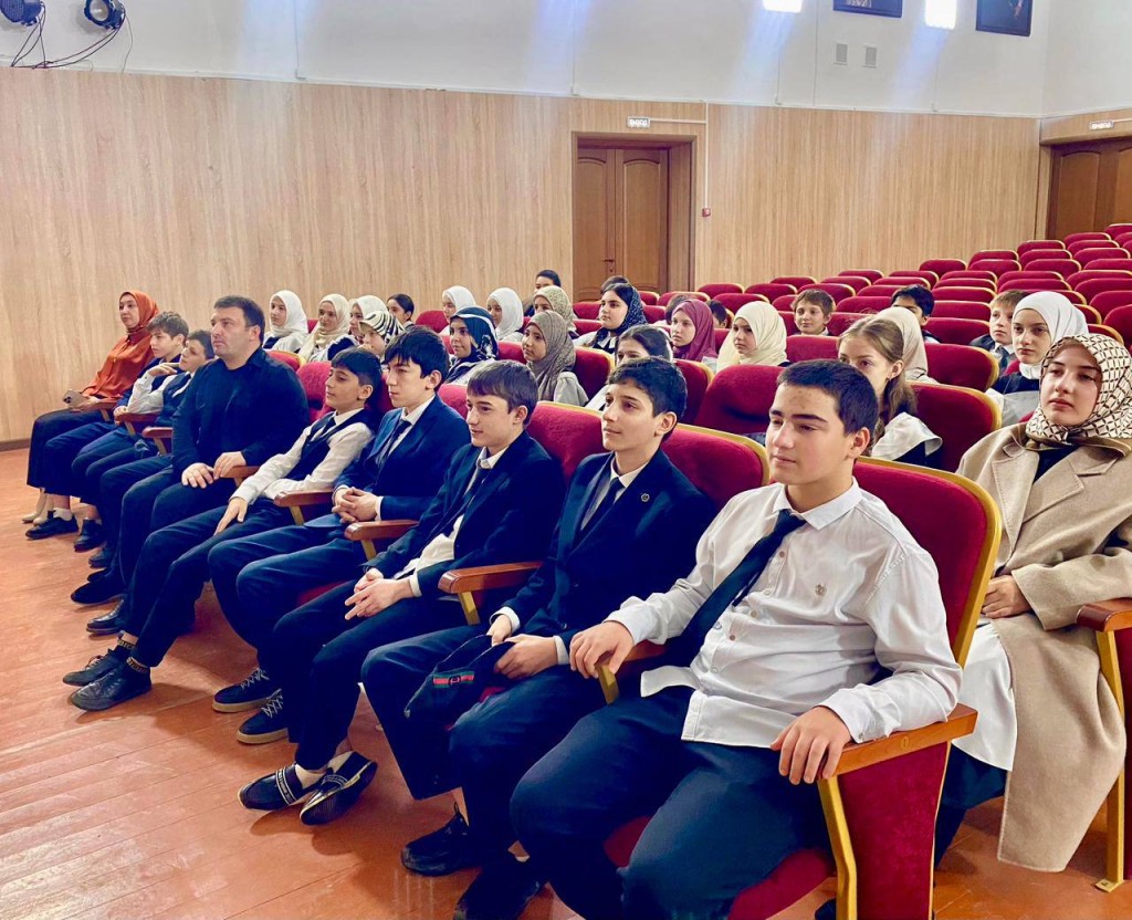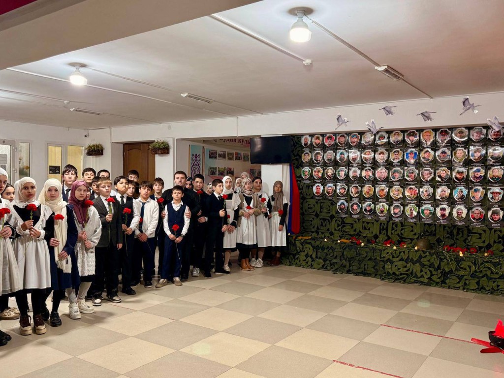 Особое место в программе заняла минута молчания, объявленная в знак глубочайшего уважения к павшим защитникам. С добрыми напутствиями и словами о важности любви к Родине к учащимся обратилась советник директора ДМЛ Зарбат Мациева.
