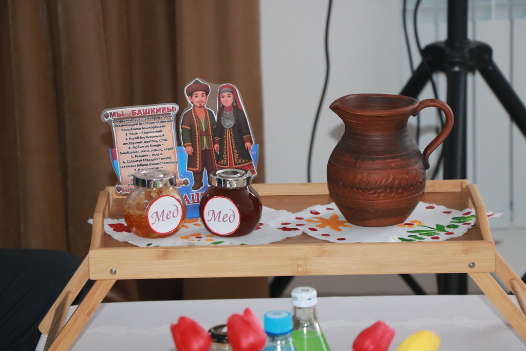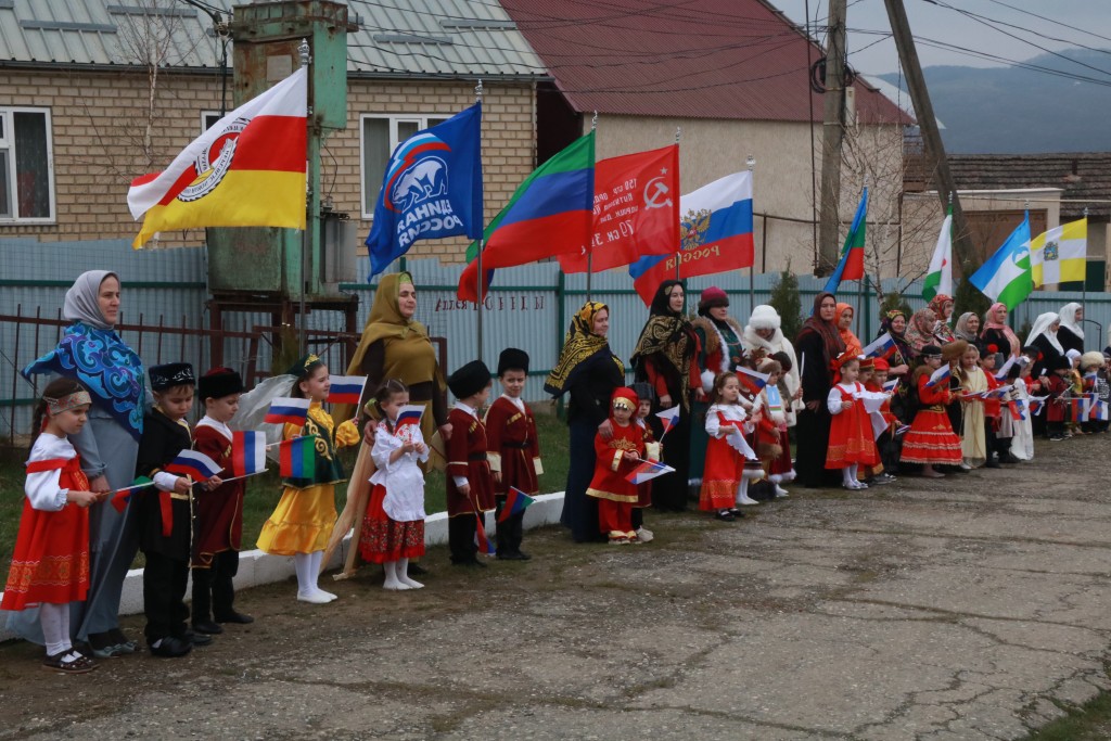 Воспитанники и педагоги вышли в национальных костюмах, представив блюда разных народов. После прозвучал гимн России, а завершилась церемония на улице — участники развернули флаги на территории детского сада.