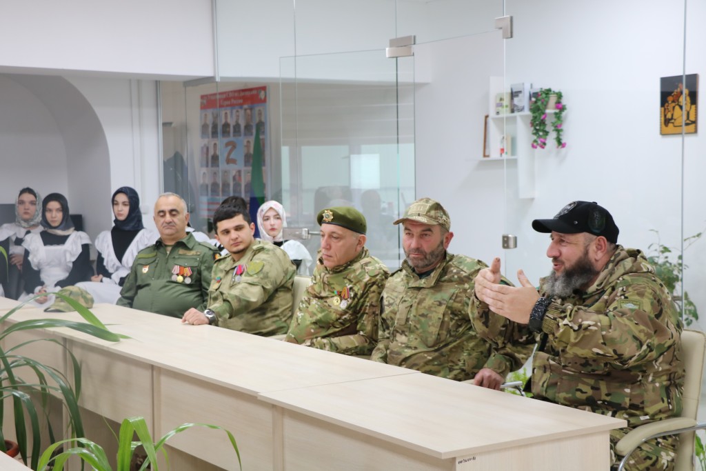 Учащиеся Дылымского многопрофильного лицея встретились с земляками — участниками специальной военной операции, вернувшимися из зоны боевых действий: Магомедом Магомедовым, Магомедхабибом Забитовым, Завуром Шихахмедовым, Исламом Шарабдиновым и Магомедрасулом Лахитовым. Их рассказы о службе, фронтовом братстве и любви к Родине стали живым примером мужества для подрастающего поколения.