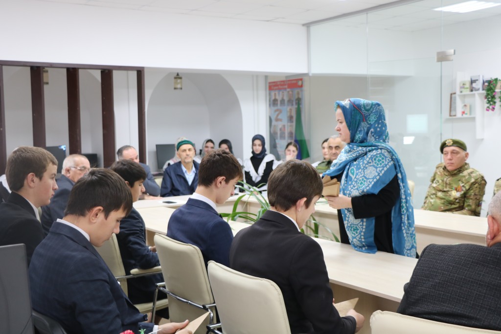 Кульминацией встречи стала символическая акция памяти. Ведущая мероприятия Ажабика Абдулмуслимова вручила каждому школьнику солдатский «треугольник» — копию фронтового письма с историями о мужестве и подвиге уроженцев Казбековского района, погибших при выполнении воинского долга.