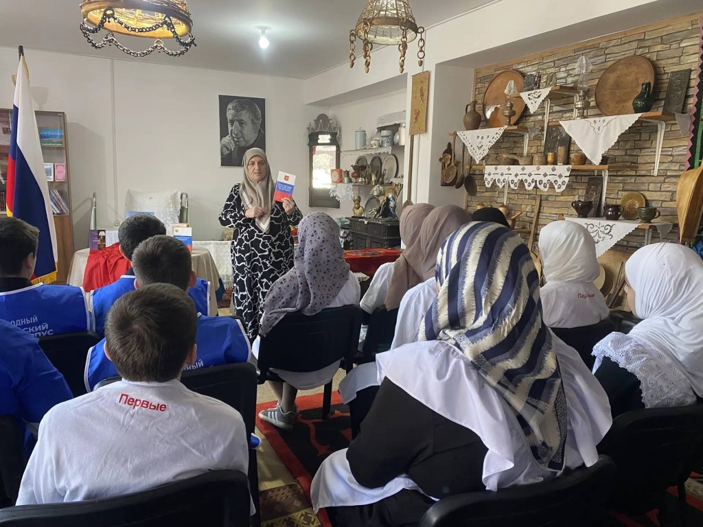 В Центре традиционной культуры народов России села Дылым для школьников был организован увлекательный музейный урок с познавательной игрой «Знатоки Конституции». С приветственным словом к участникам обратилась директор ЦТКНР Зумрат Магомедова, подчеркнувшая непреходящую ценность Основного закона страны для её суверенного развития и единства народа.