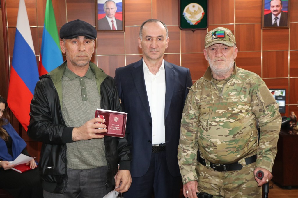 Высоких государственных наград удостоены семьи погибших военнослужащих. Ордена Мужества были вручены посмертно родным Раджаба Зайнудинова из села Инчха и Ганипава Ганипаева из села Алмак.