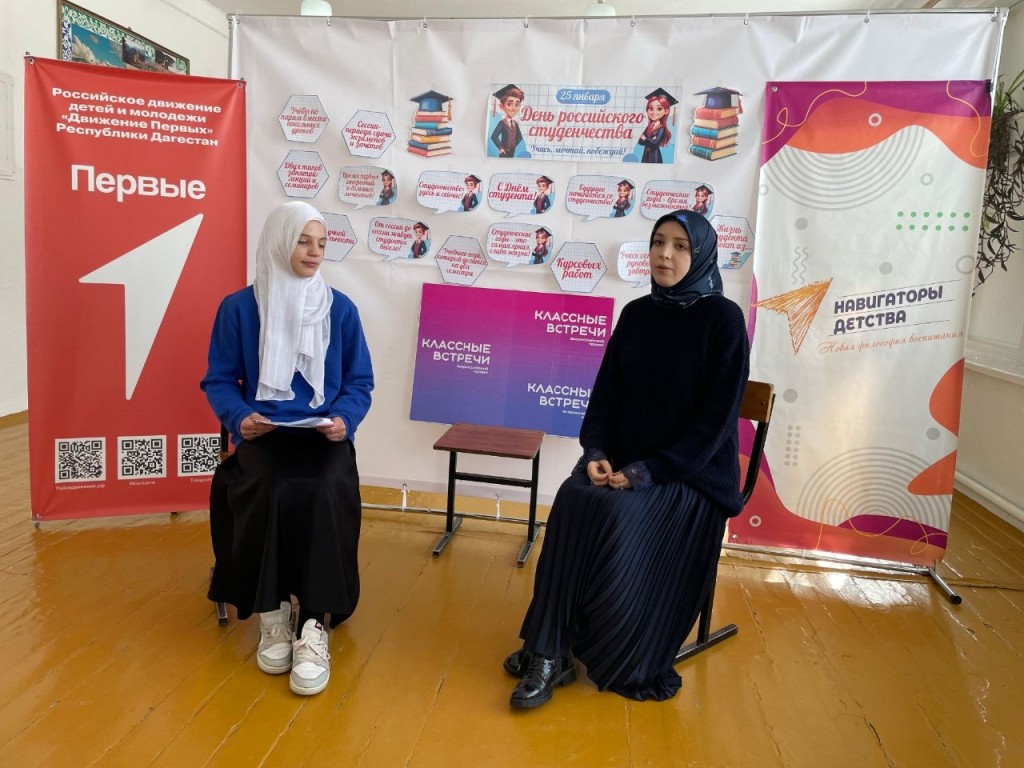 В преддверии Дня российского студенчества, который отмечается 25 января, в первичных отделениях Общероссийского общественно-государственного движения детей и молодёжи «Движение первых» Казбековского района состоялись «Классные встречи». Мероприятия прошли в рамках всероссийской акции «Шаг в студенчество».