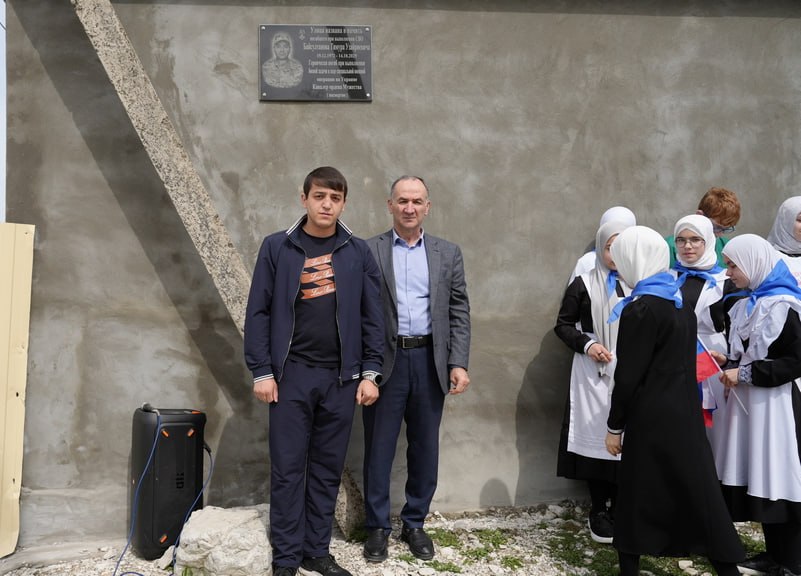 В селении Алмак Казбековского района состоялось торжественное открытие мемориальной доски, посвященной памяти Тимура Байсултанова, погибшего при исполнении воинского долга в ходе специальной военной операции.