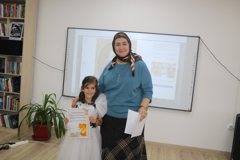 В завершение встречи директор Центральной районной библиотеки Зульмира Адилмирзаева вручила похвальные листы ребятам, наиболее отличившимся в чтении стихов и активном участии в экскурсии.