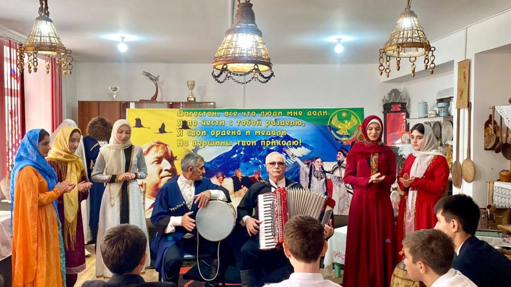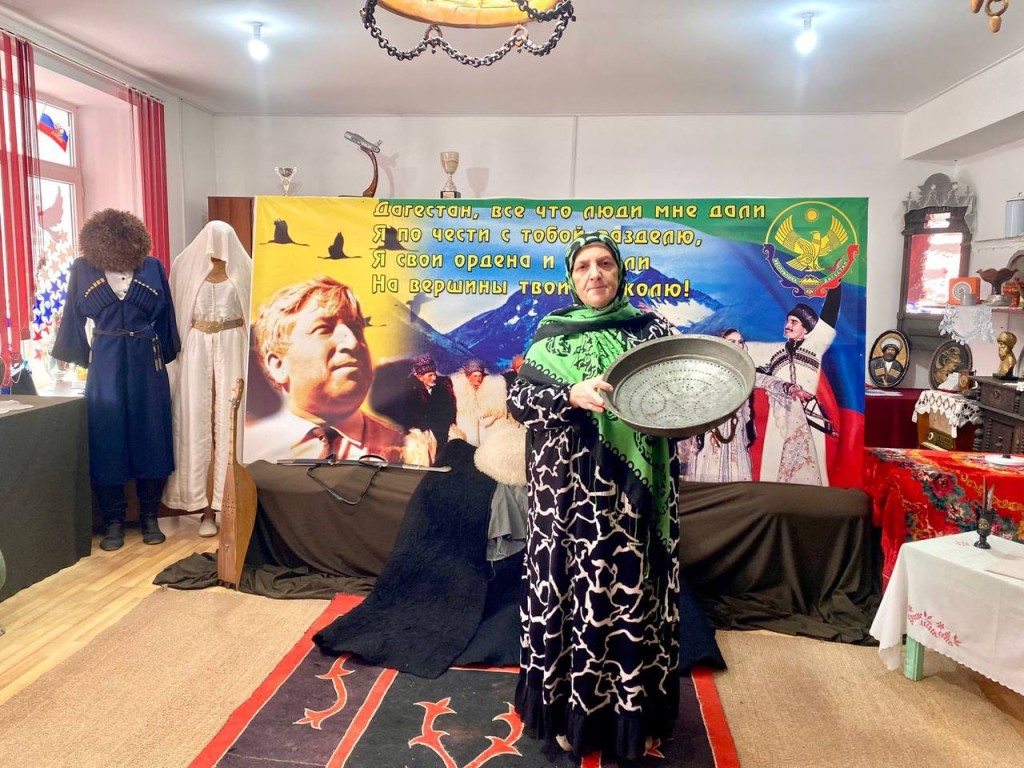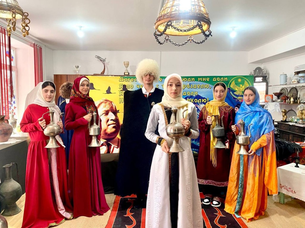 Заместитель директора Дылымского многопрофильного лицея Наида Магомедова поделилась личными воспоминаниями о встречах с поэтом в студенческие годы, когда он читал лекции, вызывавшие всеобщее восхищение. Главный специалист ЦТКНР Бурлият Усманова рассказала о традициях и обычаях народов Дагестана, после чего провела для детей увлекательную экскурсию по музею.