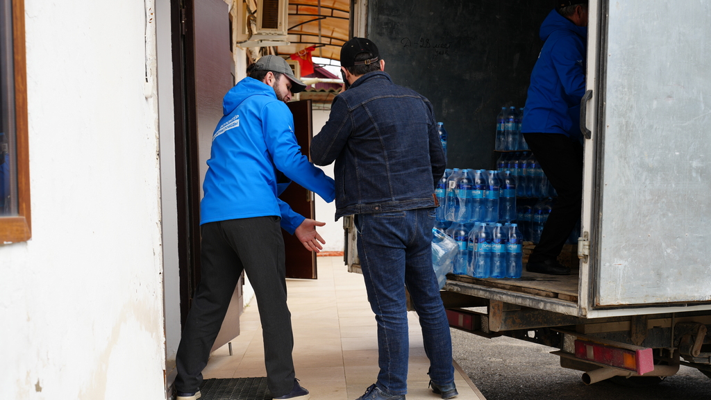 Волонтерский штаб Казбековского района получает питьевую воду для раздачи населению