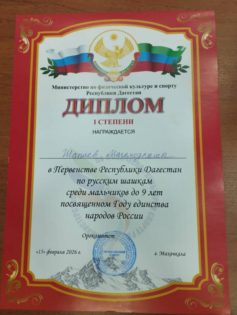 Благодаря этой победе Магомедпаша Шапиев получил право представлять Дагестан на первенстве Северо-Кавказского федерального округа, где ему предстоит сразиться с сильнейшими юными шашистами региона.