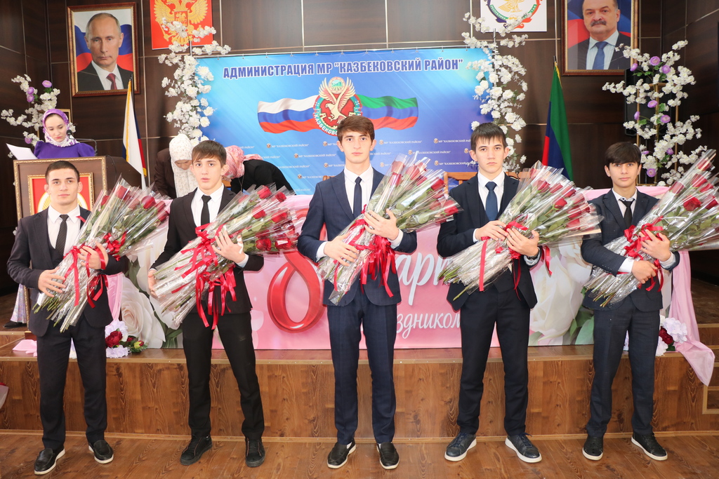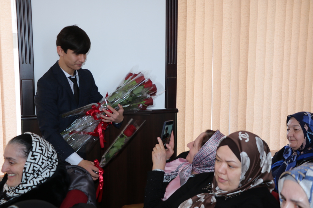 По сложившейся традиции праздник открылся вручением цветов от главы района Гаджимурада Мусаева всем женщинам, присутствовавшим в зале.